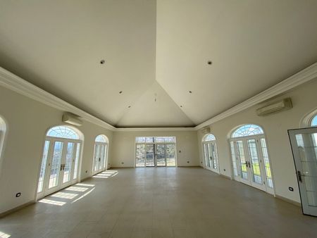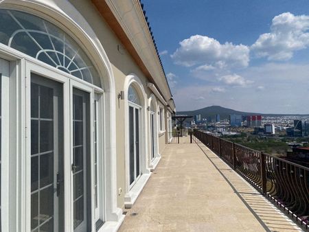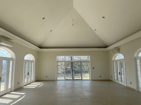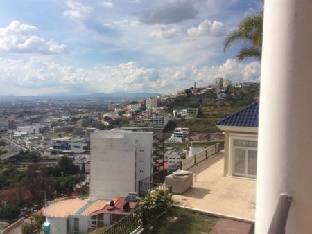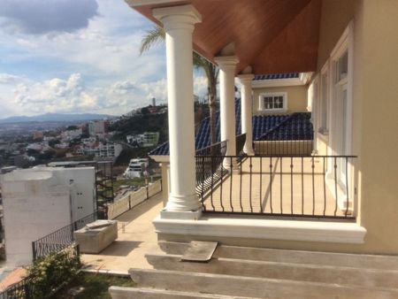 y terraza. Jardín frontal y posterior, salón de eventos para 120 personas con cocina para banquetes y bar, sanitario de hombres y mujeres jardín y terraza. Oficina y bodega para salón de eventos, baño jardín hombres y mujeres, cuarto de vigilancia, cuarto de lavado, cuarto de máquinas, garaje para cuatro autos grandes y bodega de herramientas, gimnasio. En planta alta se encuentra la recámara principal con terraza, sanitario Él, sanitario Ella, jacuzzi, cuarto de vapor, regadera Él y Ella, tocador, vestidor Él y vestidor Ella. Recámara número 2 con vestidor, baño y terraza. Recámara número 3 con vestidor, baño y terraza, sala de TV, Spa, sala de masaje, pasillo con doble altura, habitación chofer (2 personas) con baño, bodega general, habitación servidumbre (2 personas) con baño. Toldos automatizados en fachada. Circuito cerrado. En toda la casa aire acondicionado excepto en comedor, sala de TV y alberca. Acabados: Piedra pórfido en garage, banquetas y terraza, mármol crema, marfil español y rodapiés en mármol y mdf acabado blanco alto brillo. En recámaras duela de kumarú de primera. En fachada principal, posterior y laterales con molduras de granito en puertas y ventanas, aleros de encino americano, puertas y ventanas marca Pella. Puertas en cedro natural, lámparas con tecnología led. Elevador marca Shindler para 8 personas. Mármol dorado tepeji avejentado de 41X41 en terrazas posteriores y andadores exteriores.