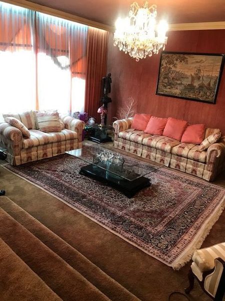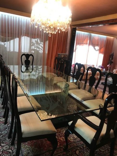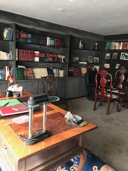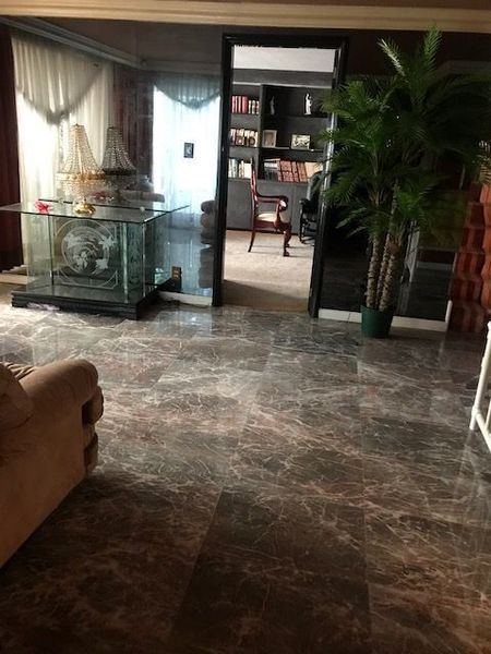 Para acceder al primer nivel por la puerta principal hay un espacioso recibidor que conduce a un amplio despacho y de ahí a una espaciosa sala, con un comedor muy grande para 12 personas y un antecomedor ubicado junto a la cocina para aproximadamente 6 personas.