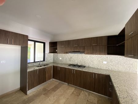 3 recámaras, c/u, con closet vestidor y baño completo, piscina, cocina integral,