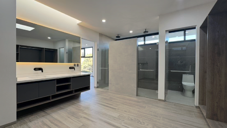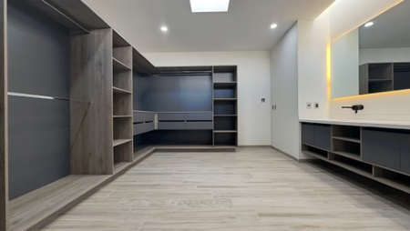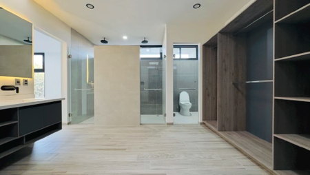 Recámara principal tipo suite con espacio para sala, balcón privado, vestidor y baño completo