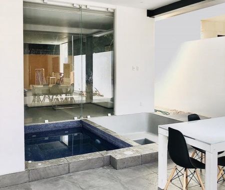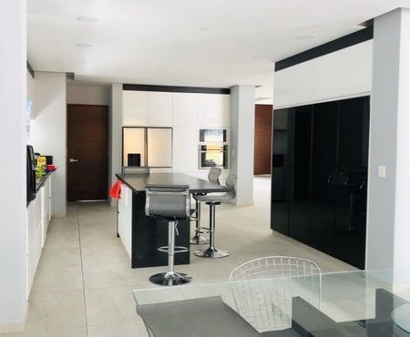En planta baja: estancia y recibidor con doble altura, terraza techada, cocina de lujo, alberca, asi como una cuarta recamara con baño completo.