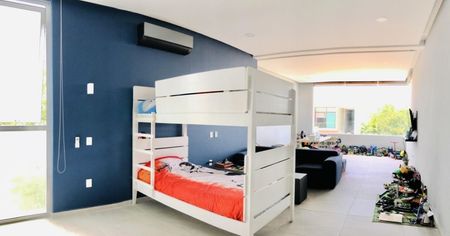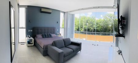 Esta espaciosa casa consta en planta alta: la recamara principal con terraza, vestidor y baño con vapor. Las 2 recamaras con walk-in-closet y baño completo, espacio para sala TV.