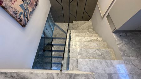 • Isla de la cocina forrada en granito Roma imperial y parrilla