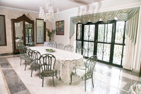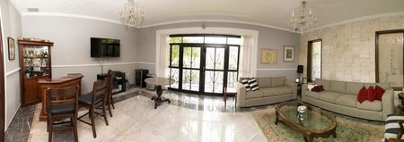 La casa consta de : sala, comedor, desayunador, alacena, sala de tv, cuarto de juegos, 3 recámaras con baños y vestidores, terraza, piscina con filtro, baño para la piscina, 2 cuartos de servicio con baño c/u, jardín, garage para 6 autos, lavadero, tendedero, baño de visitas.