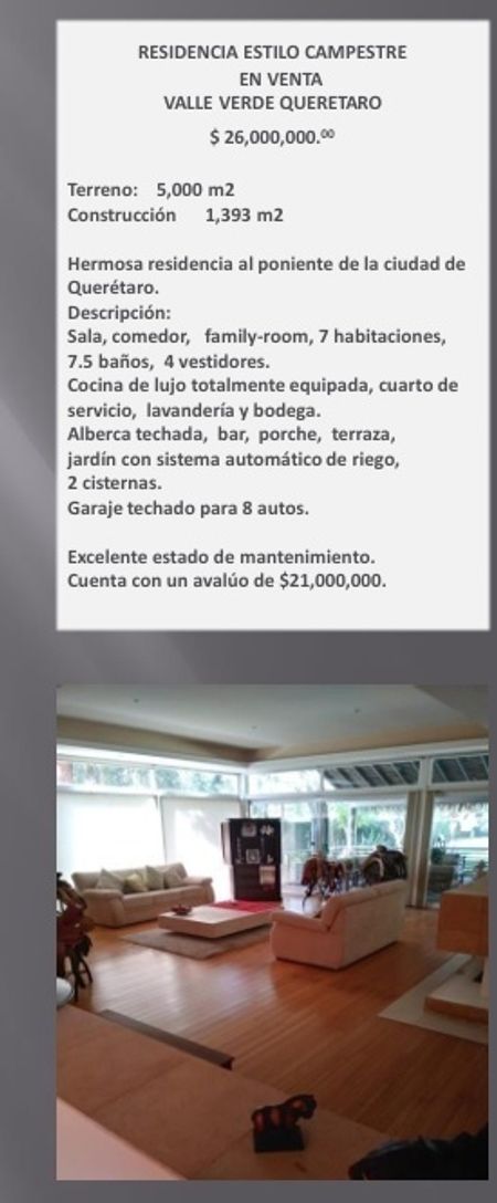 RESIDENCIA ESTILO CAMPESTRE EN VENTA, VALLE VERDE, QUERETARO