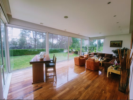 Descubre esta residencia única en Lomas Country Club, diseñada para quienes buscan lujo, privacidad y conexión con la naturaleza. Ubicada en un terreno excepcional con 50 metros de frente al fairway y 65 metros de frente a Portón Lomas, esta propiedad ofrece vistas panorámicas al campo de golf desde prácticamente todos los espacios, llenando cada rincón de luz natural y tranquilidad.