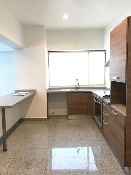 El departamento se encuentra en el 9 piso, cuenta con elevador, 3 recámaras la principal con vestidor y baño las otras dos con closet y comparten baño, 2 lugar de estacionamiento techados, cuarto de lavandería y 1 bodega