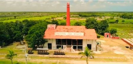 Desfibradora funcionando con tours educativos por los campos henequeneros cercanos.