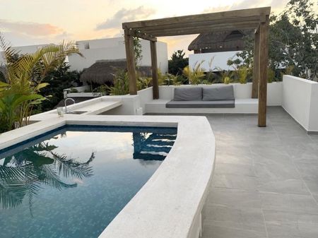 Este nuevo desarrollo cuenta con un hermoso patio central con una alberca, una zona para tomar el sol y jardines tropicales. El complejo es seguro y cuenta con acceso controlado y seguridad las 24 horas. Esta colonia de Tulum también ofrece acceso a Internet de alta velocidad confiable.