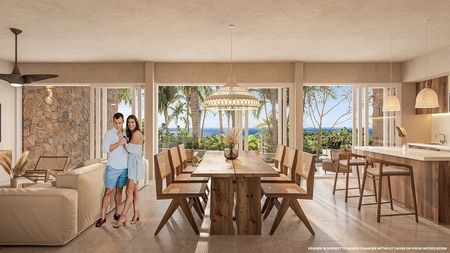 Estos luminosos y espaciosos departamentos de 2 y 3 habitaciones y penthouses ofrecen diferentes distribuciones y opciones para satisfacer sus necesidades. Algunas de las unidades tienen vistas al mar, otras tienen vistas parciales al mar y algunas tienen vistas a la selva. Todas las modernas residencias cuentan con una cocina equipada con horno, una estufa de 6 quemadores con campana extractora y encimeras y salpicaderos de cuarzo. Tienen una amplia sala de estar y comedor con vista, un área de lavandería y una terraza privada. Estos departamentos tienen pisos de mármol y acabados de lujo que son duraderos y fáciles de mantener. Las exclusivas unidades penthouse tienen terrazas privadas en la azotea y los residentes también tienen acceso a siete áreas comunes en la azotea con albercas infinitas y vistas panorámicas al mar.