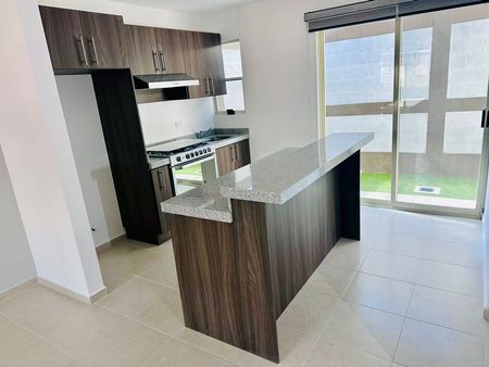 La cocina integral es un verdadero sueño para los amantes de la gastronomía, con acabados de granito en la barra desayunador, ideal para compartir momentos en familia o con amigos. Además, la propiedad incluye una cochera con capacidad para dos autos, asegurando tu comodidad y seguridad.