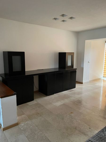 tres recámaras cada una con baño, cuarto de servicio con baño completo, medio baño de visitas, cocina integral, sala- comedor, balcón, alacena, jardín de 102 m2 , terraza de 36 m2 , 3 cajones de estacionamiento techados de 45 m2 , bodega 6 m2 .
