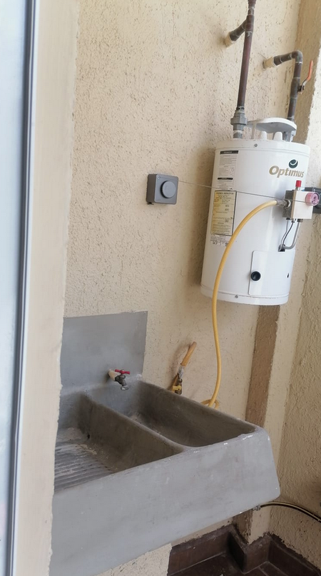 CUARTO DE LAVAR: Calentador de agua, tallador y en la azotea tanque estacionario de gas.