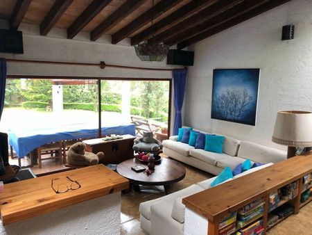 Casa en venta, condominio horizontal en Avándaro, cuenta con 5 recámaras, 6 baños completos, sala, comedor, amplia cocina. Terraza techada con jacuzzi, comedor para 12 personas, estacionamiento para 3 autos techados y 2 abiertos. Cuenta con áreas comunes: Zona de asadores y horno para pizza, cuarto de juegos, alberca, jacuzzi, vapor, vestidores con regaderas y baños, palapa, jardín con camastros, mesas, sillas, sombrillas, cancha de tenis (proyecto para cambiar a cancha de pádel) celdas solares. Vigilancia 24 horas. Ven a conocerla