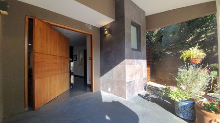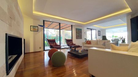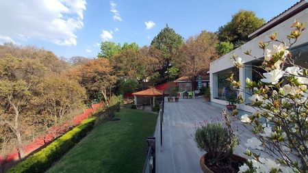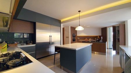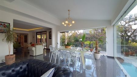 La majestuosa mansión ubicada en Hacienda de Valle Escondido, Atizapán de Zaragoza, es una obra de arte arquitectónica estilo californiano, con una construcción impecable en dos niveles y una antigüedad de siete años. Con 2300 m² de terreno y 890 m² de construcción, cada rincón ha sido cuidadosamente diseñado y mantenido. Desde su entrada, donde una puerta de madera da la bienvenida, hasta su amplio comedor iluminado con vistas impresionantes, la mansión emana elegancia y confort.
