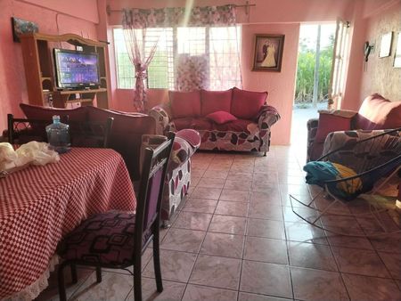 Casa principal con 2 recamaras, 2 baños completo, sala, comedor, cocina y medio baño.