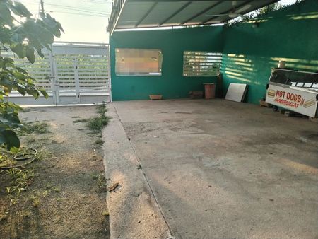 Una estancia independiente con baño completo más un amplio terreno en la parte posterior y cuenta con un brocal