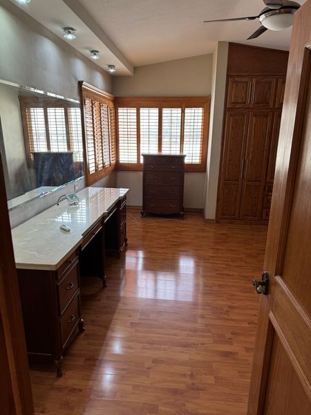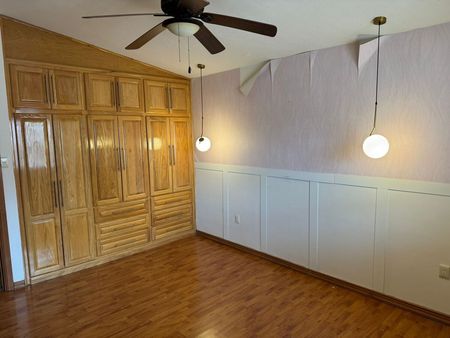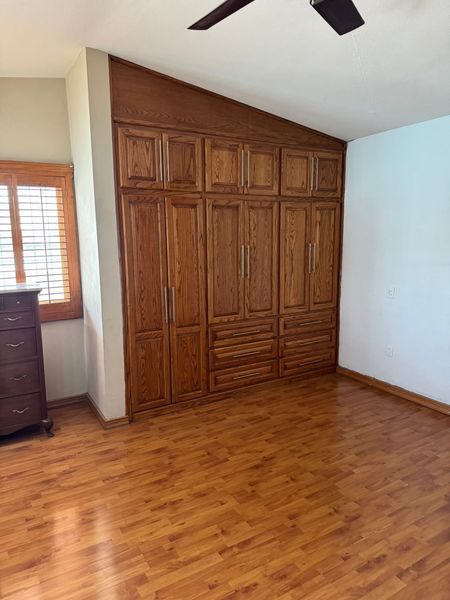 Se entrega con muebles empotrados en madera de encino y marcos en las puertas.