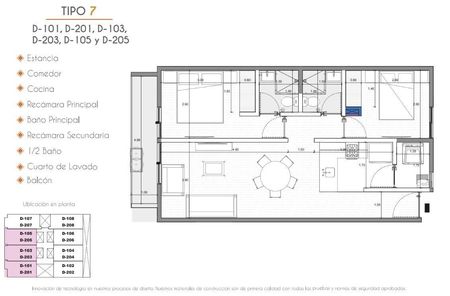 Las dos recámaras ofrecen un oasis de tranquilidad y privacidad. Además, el departamento cuenta con un baño completo y un medio baño adicional para mayor comodidad. También encontrarás un área de lavado y closet, pensada para hacer tus tareas diarias de manera práctica y eficiente.
