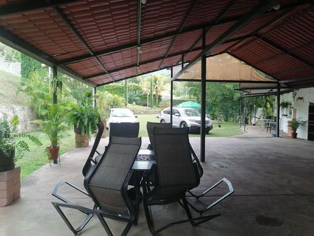 Cuenta con una casa de campo con 3 recamaras, dos baños completos, cuarto de servicio con baño completo, baño para dama y caballero; con todos los servicios.