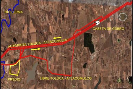 Terreno ubicado a 16 km de Toluca, 20 km de Metepec, 58 km de Reforma y 72 km del zócalo de la CDMX.