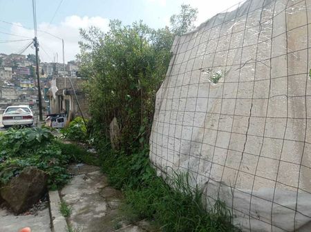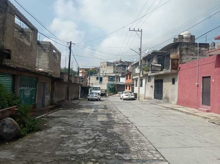 Terreno con uso habitacional de 100 m². El terreno tiene una inclinación descendente y cuenta con drenaje y estructura de mampostería. La propiedad está debidamente escriturada y ubicada sobre una calle plana.