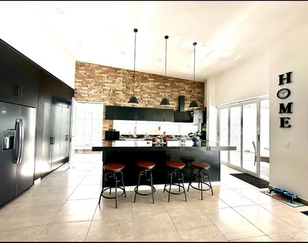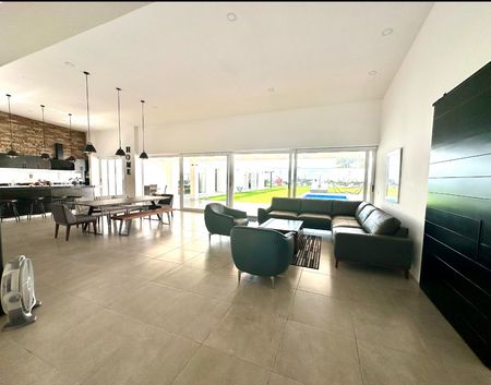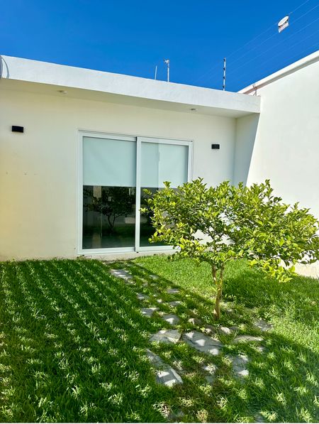 Casa con gran diseño arquitectónico construida en una sola plantas, ideal para adultos mayores, consta de amplia estancia con sala de juegos, cava, cocina abierta con alacena, sala-comedor, medio baño de visitas, recámara principal con walking closet ,baño con lavabos y regaderas dobles, terraza. Segunda y tercer recámara comparten baño, estudio, área de asador, alberca con cuarto de máquinas, baño de hombres, mujeres, lavabo doble y regadera exterior , amplio jardín, cuarto de lavado en pasillo exterior , garage para 4 autos con dos bodegas.