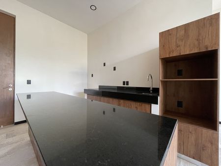 *Mesetas de granito en cocina y barra desayunadora, pisos de marmol, yeso en muros, muros divisiorios de block.