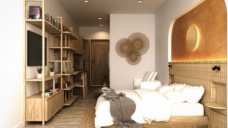 Estos hermosos estudios y departamentos de 1 y 2 habitaciones ofrecen diferentes diseños y distribuciones para satisfacer sus necesidades, incluyendo opciones de lock-off para una ocupación adicional y potencializar sus ingresos. El edificio cuenta con 163 unidades, de las cuales 140 son estudios. Todos los departamentos tienen cocina con estufa eléctrica, área de dormir con armario abierto y una pequeña sala de estar con un centro de entretenimiento. Se abren a un balcón privado con vistas a la ciudad. Este es un lugar encantador para disfrutar de su café matutino y desayuno o de una copa de vino por la noche. Estos departamentos tienen pisos de mármol y acabados de alta calidad que son duraderos y fáciles de mantener. Se ofrecen en venta completamente amueblados, equipados y listos para mudarse con todo, desde vajilla y electrodomésticos hasta ropa de cama y toallas.