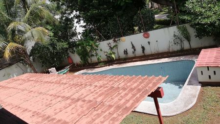 Large pool , patio , small basketball court and and an outdoor room that can be used as an storage area, gym etc.