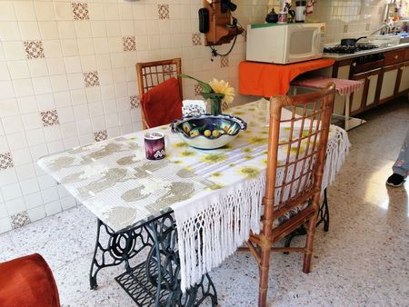 Get in into the house you will have a guests bathroom, a little studio/office accordding to your needs and in an open space there is a living room, dining room and a very large kitchen with a freestanding spacious cupboardtertops a lot a storage.