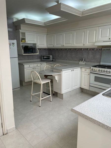 Tiene amplia sala y comedor, medio baño de visitas, cocina, cuarto de servicio y de lavado.