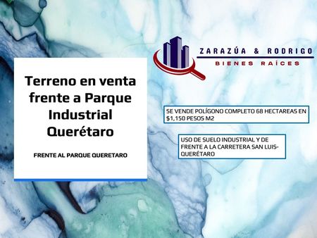 Terreno 68 hectareas frente al Parque Industrial Querétaro