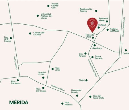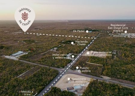 Jardines de Chaká es un desarrollo compuesto por 33 terrenos residenciales al norte Mérida, en San Diego Cutz, Conkal, Yucatán.