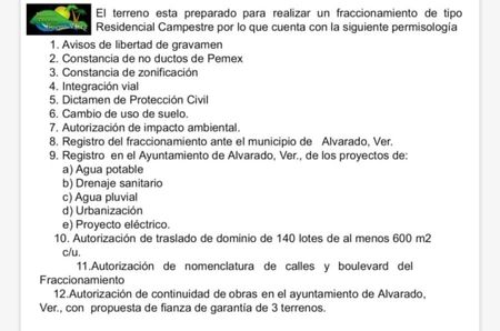 Terreno apto y listo para hacer fraccionamiento en Anton Lizardo
