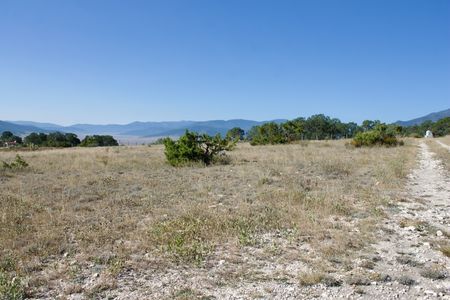 El terreno está en posición elevada, lo que permite admirar el valle abajo, con montañas en el horizonte. El acceso al terreno es rústico y un poco accidentado.