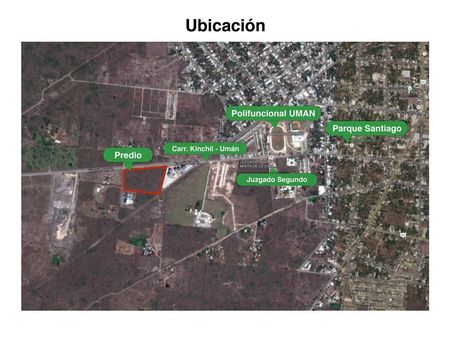 El terreno esta en una muy buena zona donde se están desarrollando casas habitación, justo al inicio de la carretera Umán - Kinchil.
