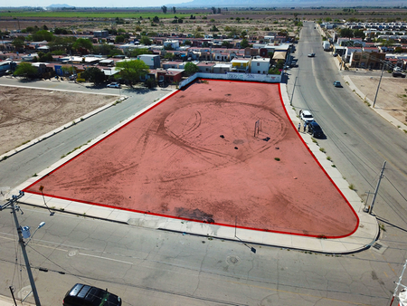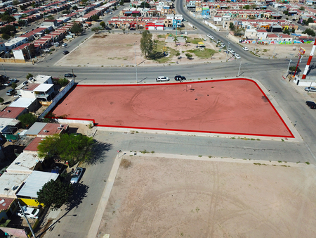 Amplio terreno comercial ubicado en esquina sobre Calz. de las Monarcas y Av. Ferrol, en un área residencial, cerca de escuelas, comercios. Cuenta con 2 frentes amplios.