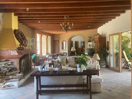 Cuenta con7 recámaras con vestidor y baño cada una, 2 medios baños (visitas), sala, comedor, antecomedor, cocina cerrada, 2 alacenas, 2 estudios, 1 sala de TV, 5 terrazas, 6 balcones, 3 chimeneas, 3 bodegas, 2 cuartos de servicio con baño, cuarto de lavandería, área de lavandería, patio de tendido, caseta de vigilancia, jardín, alberca y jacuzzi.