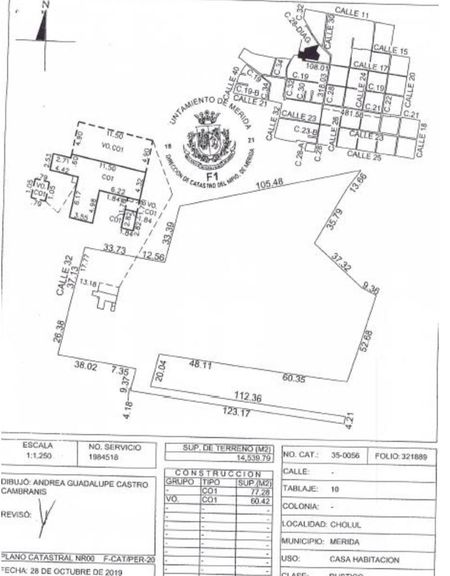 Gran oportunidad de inversión al nororiente de Mérida, macro lote en venta ubicado en Cholul, zona de gran crecimiento y alta plusvalía. Terreno de forma irregular con una superficie total de 14,540 m2 con autorización para realizar desarollo inmobiliario de hasta 34 lotes de 10 x 23.5 (no incluye trámites). Oportunidad única para inversionistas y desarrolladores. Documentación en regla, libre de gravamen y listo para escriturarse.