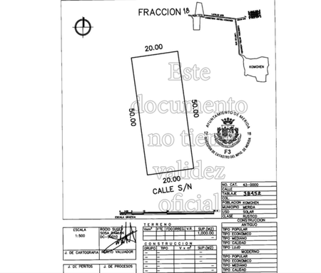 Venta de terreno ubicado en la zona Residencial de Komchen de 1,000m2 en su totalidad, con medidas de 20m de frente x 50m de fondo.