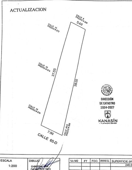 Medidas de 7.90. Frente x 38 M en su lado más largo, cierra al fondo 5.60 y 37.65 el otro lateral. ( Se adjunta foto del plano)