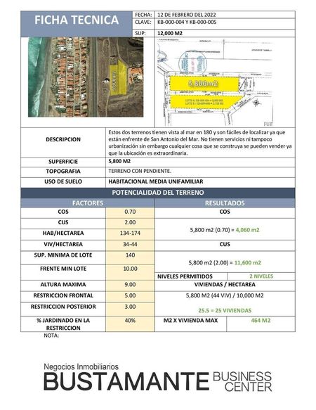 Ventas de Terreno frente a San Antonio del Mar que colinda con Real del Mar y Hacienda del Mar. Su topografía permite relotificar para la venta de lotes a desnivel con vistas al mar.