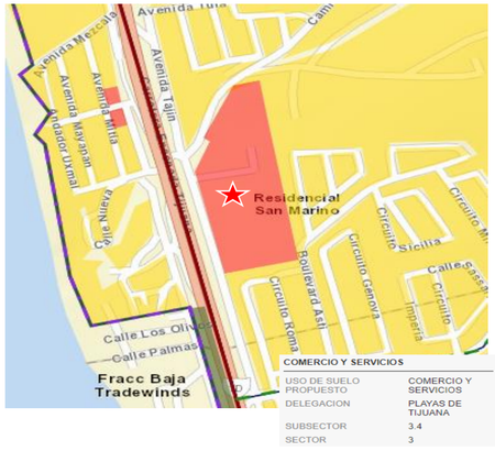 En su Carta Urbana Tijuana 2010 - 2030 cuenta con uso de suelo para Comercio y Servicios, siendo la zona compatible con uso habitacional multifamiliar vertical.