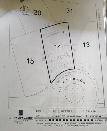 Excelente oportunidad de terreno en venta ubicado en Lomas del Campanario IV , unas de las zonas con mayor plusvalía de todo Querétaro. Cuenta con seguridad las 24 horas.
