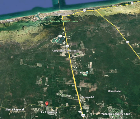 Ubicado sobre carretera Progreso a Kikteil, a 4.5 km aproximados de la carretera a Progreso y a la entrada de Kikteil.