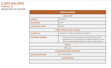 Aprovecha esta gran oportunidad de adquirir este amplio terreno en venta ceracno al aeropuerto intenracional de Querétaro, casi colindante con el fraccionamiento Roble Residencial y muy cerca de la Universidad de Arkansas.