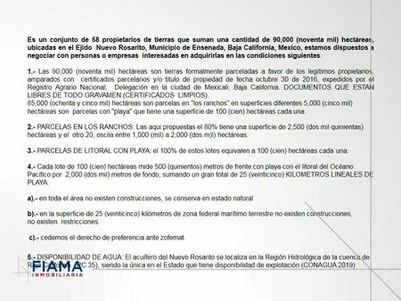 90 MIL HAS EN VENTA EN ROSARITO, B.C.