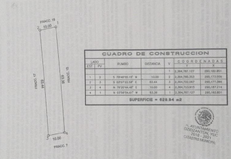 Terreno en venta en segunda fila en la playa de Santa Clara, Dzidzantún.Superficie total: 629.94 m2