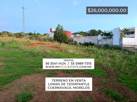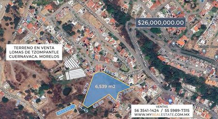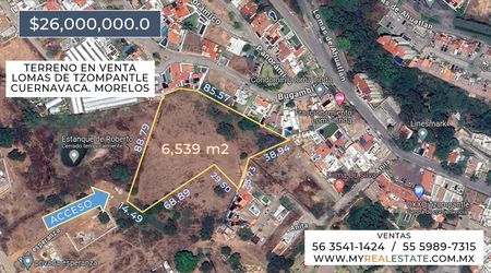 Terreno en venta en la colonia Lomas de Tzompantle, Morelos de 6,539 m2, sin construcción. Ideal para desarrolladores. Escriturado. Todos los documentos en regla. Precio: $26,000,000.00 pesos. Entrega Inmediata. Compraventa directa. Ventas: 5635411424 y 5559897315. Tenemos más terrenos para desarrolladores. Visite MyRealEstate.com.mx